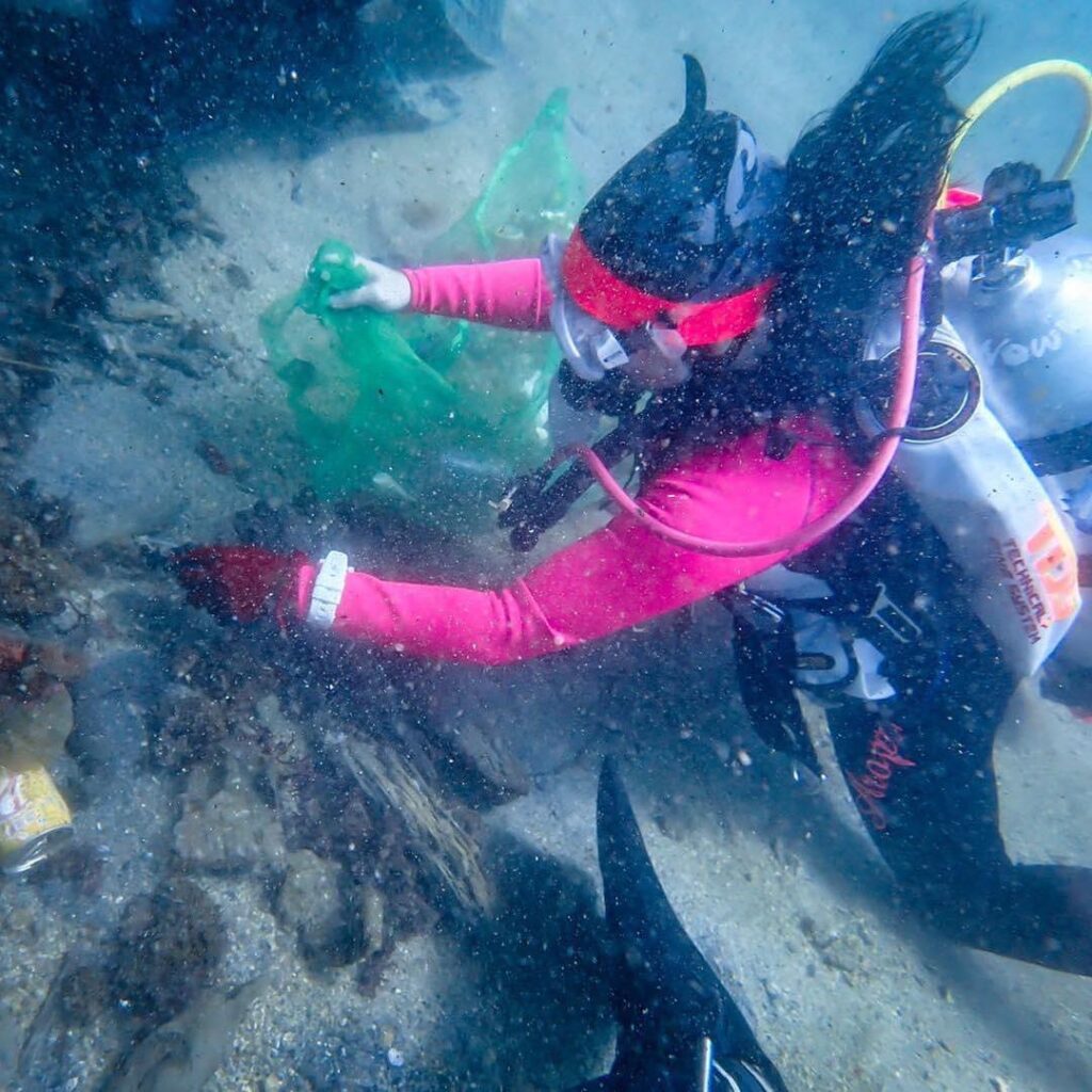 透過撿拾清理海灘上的